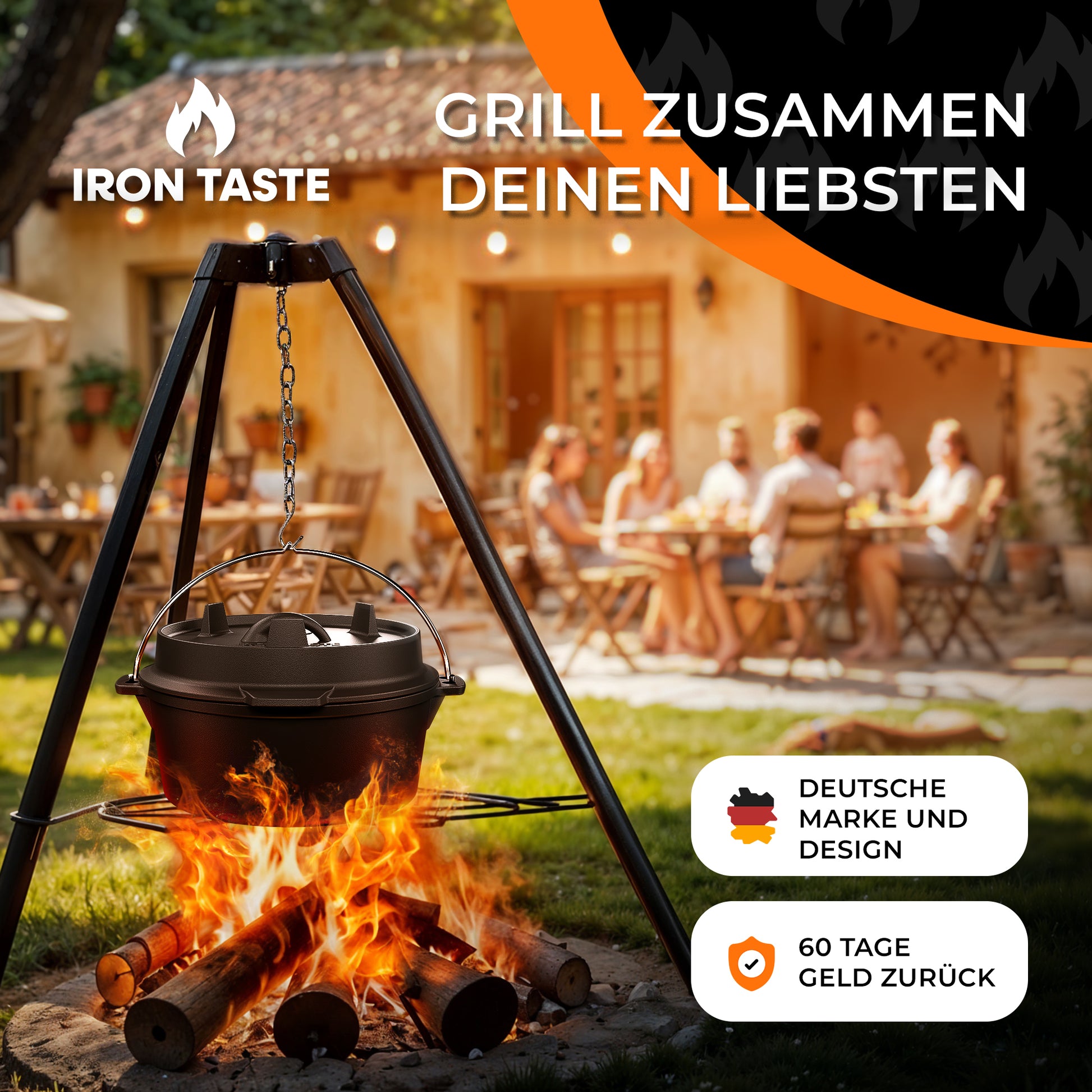 IRON TASTE Dutch Oven Set 4.5L - Feuertopf Gusseiserner Topf mit Füßen & mit praktischem Deckelheber